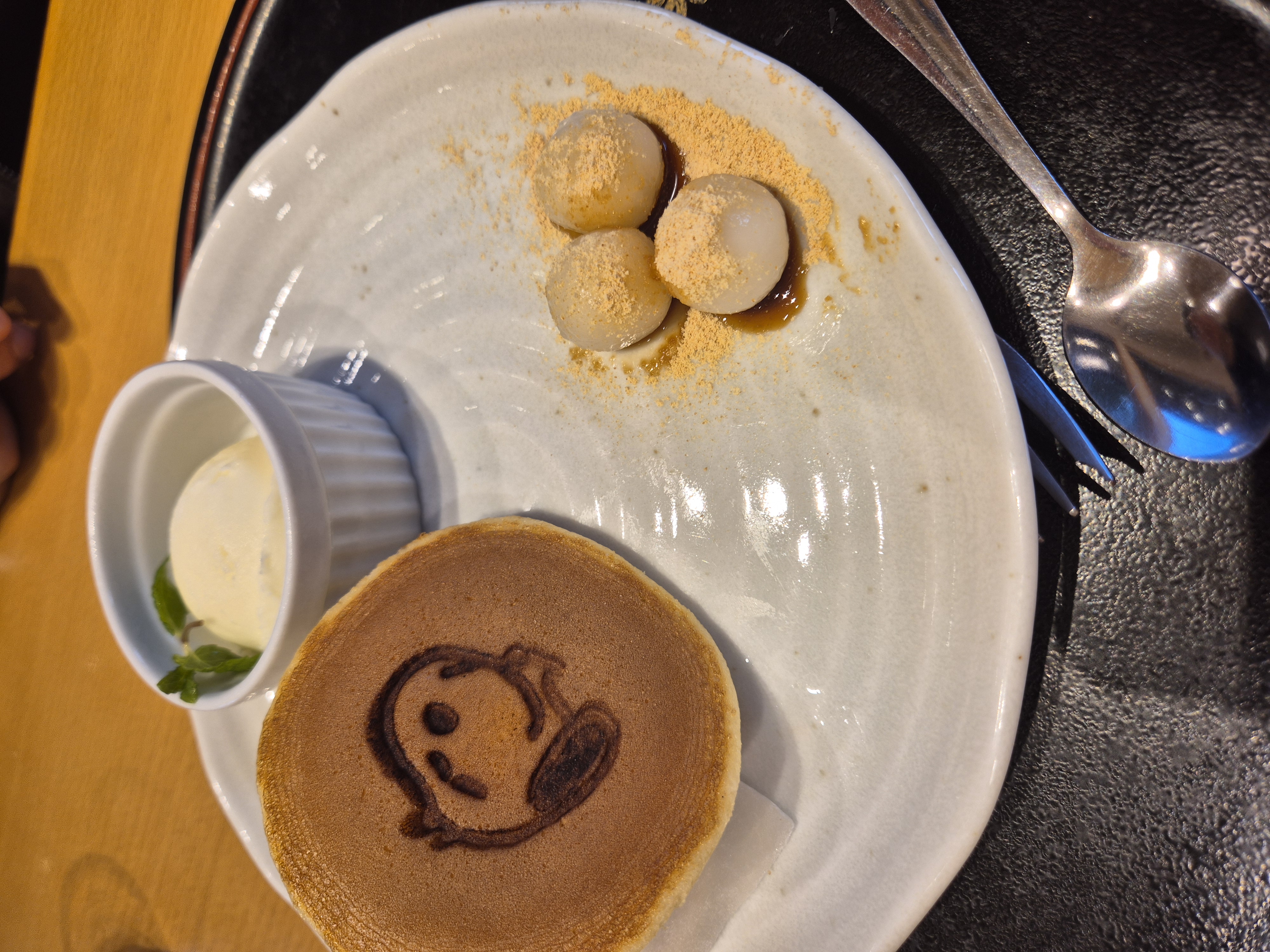 따뜻한 밀크티 + 스누피 얼굴 ㅋㅋㅋ 스누피얼굴은 마시멜로우더라고요... 귀엽긴 한데 한 입 먹고 스누피얼굴 너무 달아서 다 먹지 못했어요