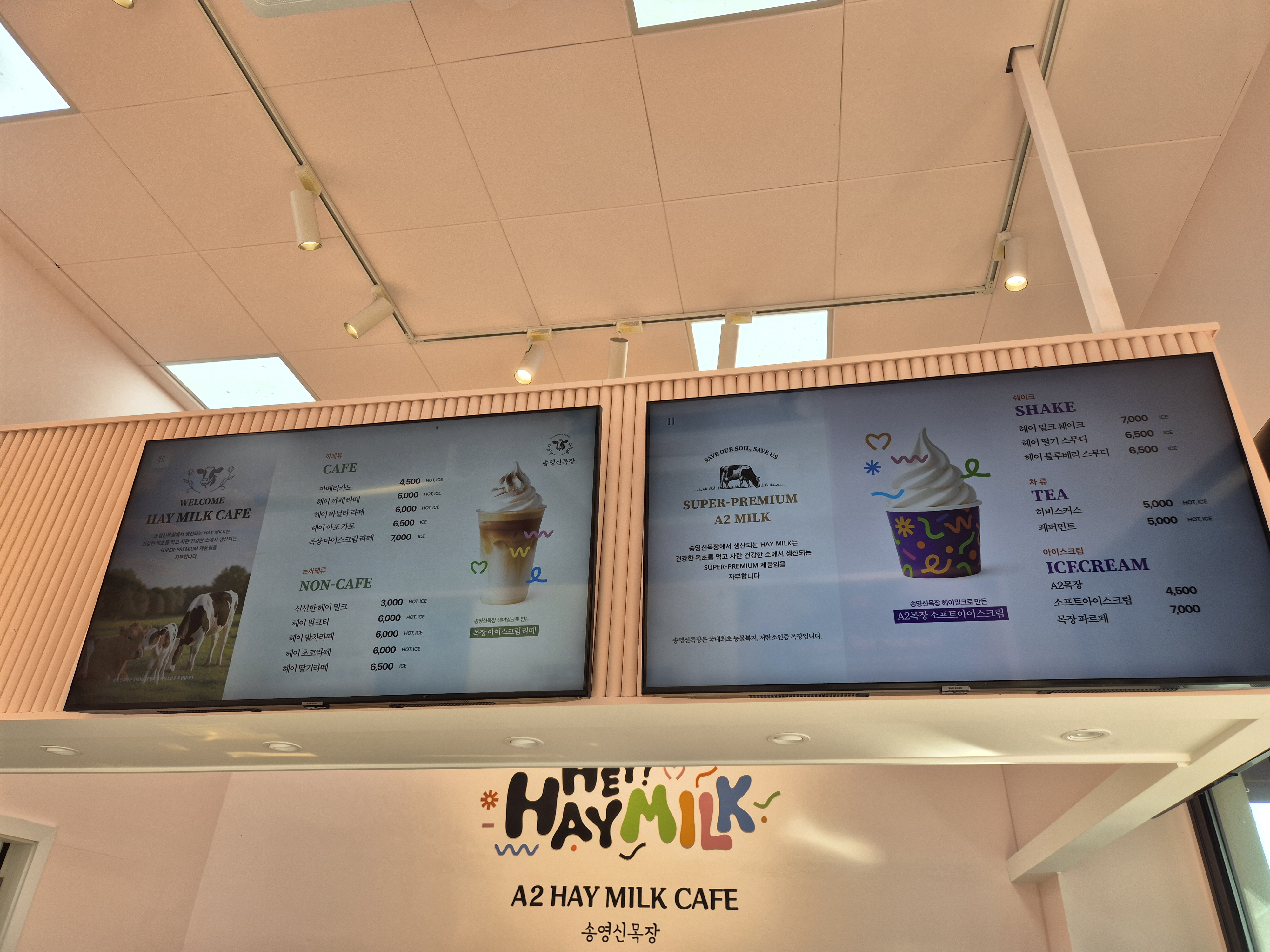 입구에 있는 우유전용 음료가 맛있는 카페에서 밀크쉐이크와 카이막을 사왔어요.